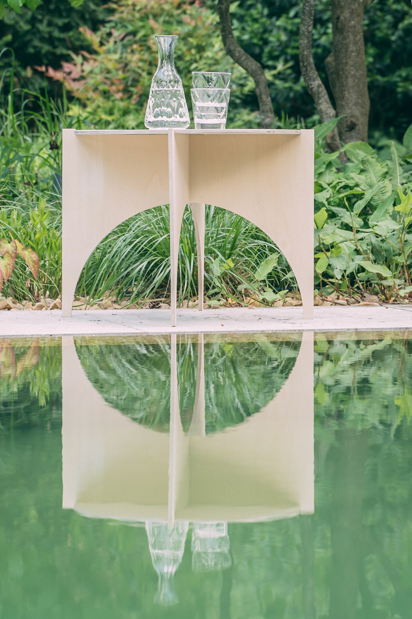 Sidetable. Plywood OR stainless steel. 60x44cm